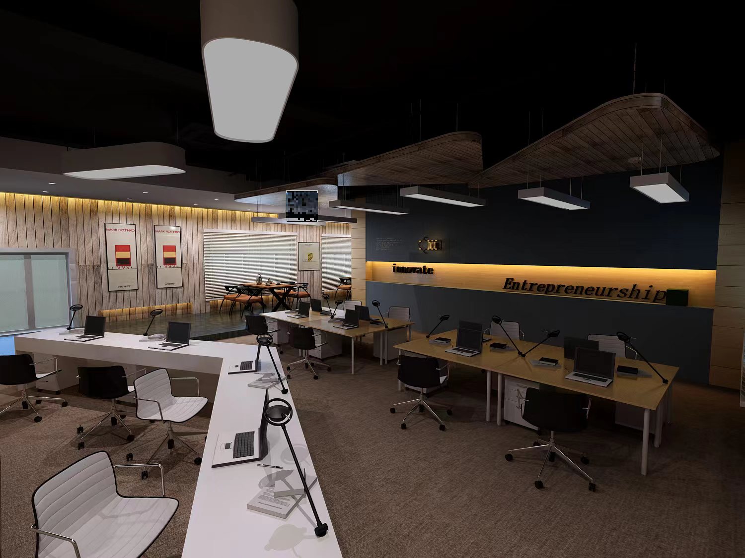 充足而均匀的照明有助于提高生产效率和工作质量。根据不同区域的功能需求,选择合适的照明灯具,如吊灯、壁灯、台灯等,并合理布局,避免照明死角。